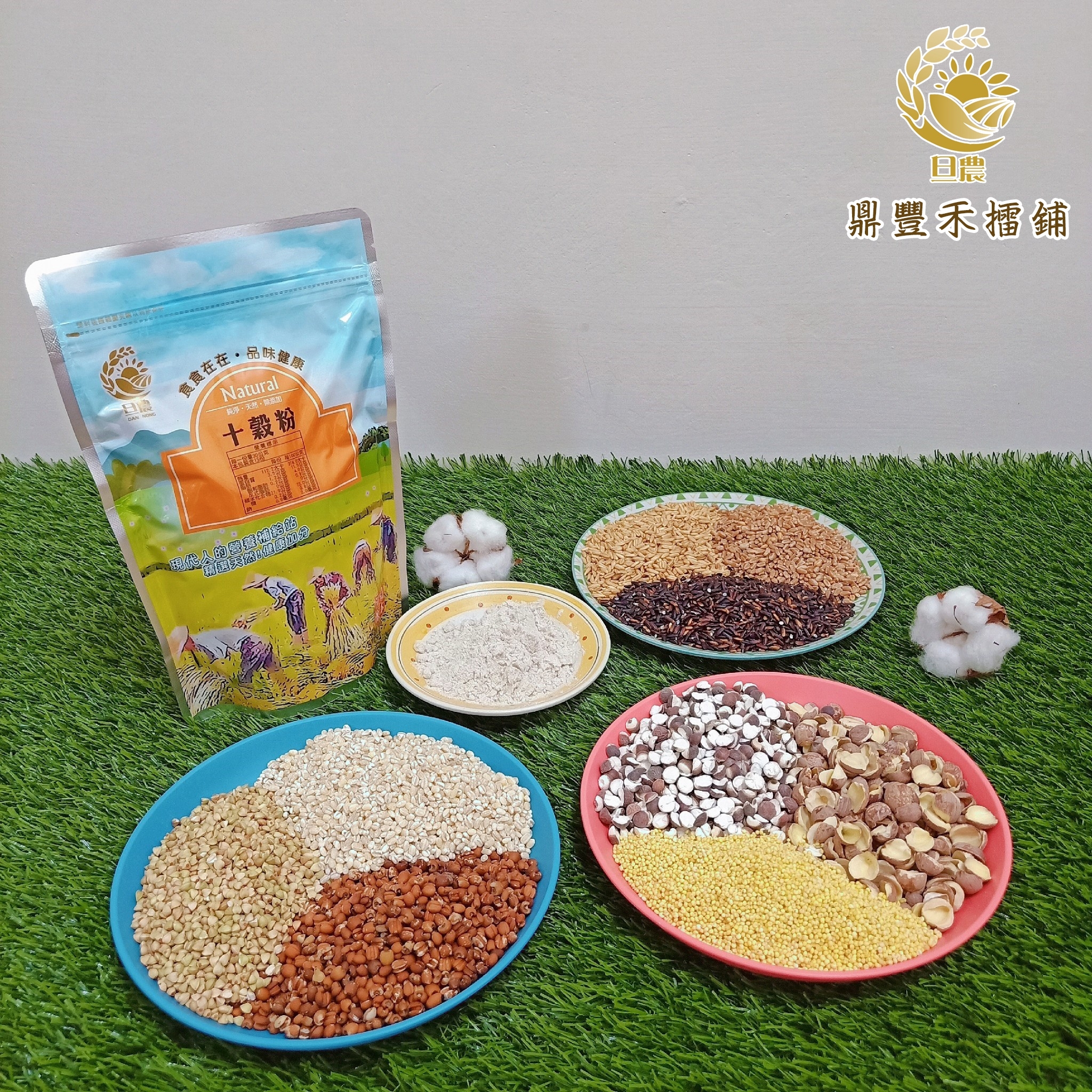 〝十穀粉〞使用精選全榖穀物研磨而成,如有機糙米、有機黑糯米、蕎麥、芡實、蓮子等,全榖含有豐富的維生素B、礦物質鈣、鐵、鉀、鎂,麩皮也含有膳食纖維,特色為不含豆類,因此不能食用豆類製品的朋友也可食用喔!